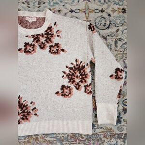 Knox Rose Women's Cable Knit Dusty Floral Cream Peach Brown Pullover Sweater XS