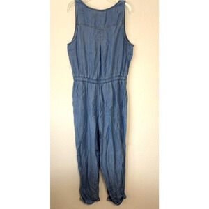 Knox Rose Women’s Chambray Denim Button Jumpsuit Medium Waist Tie Cottagecore