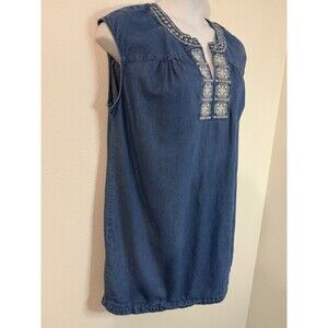 Knox Rose Womens Chambray Embroidered Tunic Sleeveless Dress XXL 65% Cotton