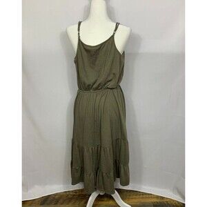 Knox Rose Womens Dress Large Green Sundress Maxi Boho Tiered Adjustable Straps
