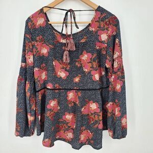 Knox Rose Women's Floral Boho Peasant Long Sleeve Top Size Medium