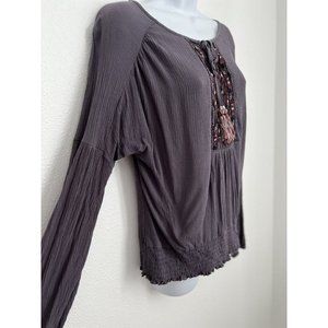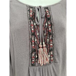 Knox Rose Women’s Gray Embroidered Crepe Wrinkled Long Sleeve Blouse Boho Medium. Cute fall/ winter blouse in great Preowned condition. No obvious flaws. Measures approximately 24” armpit to armpit and length 26” from shoulder to bottom. I appreciate your business and strive for a five star rating. Please feel free to message me with questions.