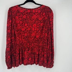 Knox Rose Women's Long Sleeve Embroidered Blouse Red Floral Size XXL Plus 2X