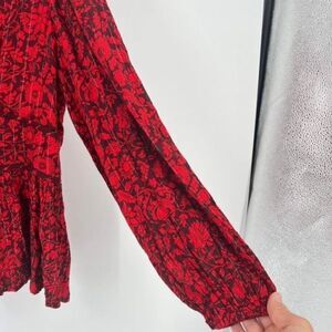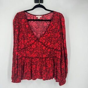 Knox Rose Women's Long Sleeve Embroidered Blouse Red Floral Size XXL