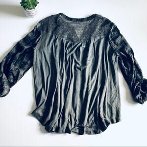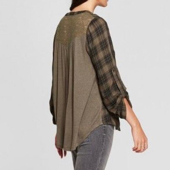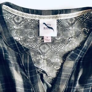 Knox Rose Women's M Button Down Plaid Lace Back Top Green Fall Boho