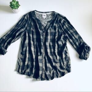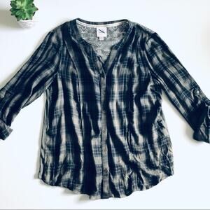 Knox Rose Button Down Plaid Lace Back Top Green SZ M