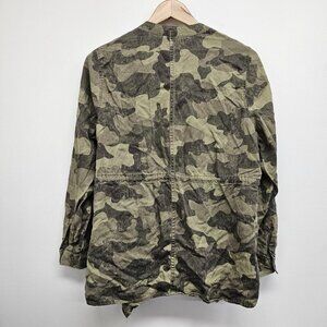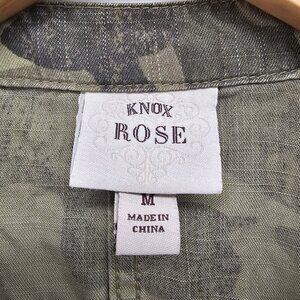Knox Rose Womens M Open Front Green Camo Utility Jacket Roll Tab Sleeve