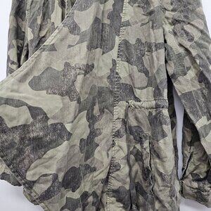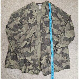 Knox Rose Womens Medium Open Front Green Camo Cardigan Jacket Roll Tab Sleeves