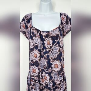 Knox Rose Womens Midi Dress Size M Blue Floral Square Neck Tiered Boho Bloomcore