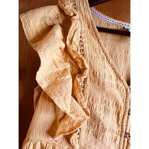 Knox Rose Women's Mustard Yellow Short Babydoll Dress Ruffles Pockets Size M