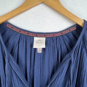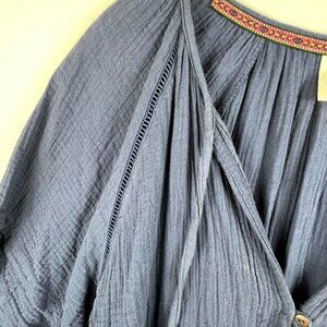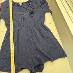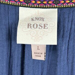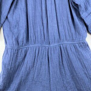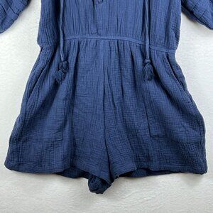 Knox Rose Womens Navy Blue Gauze V-Neck Romper Shorts Size L Puff Sleeve