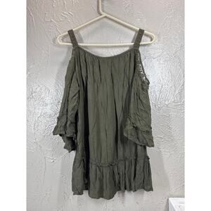 Knox Rose Womens Olive Green Prairie Boho Cold Shoulder 3/4 Sleeve Top Large