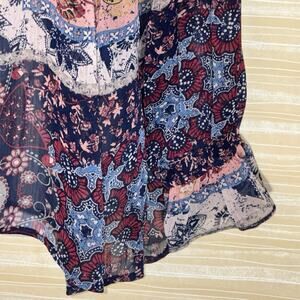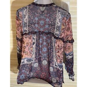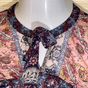 Knox Rose Women's Patchwork Peasant Key hole Blouse M 0638