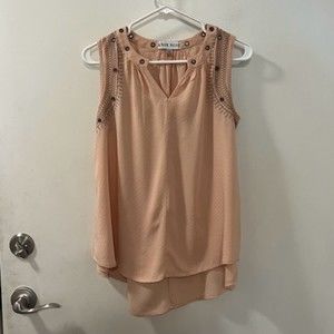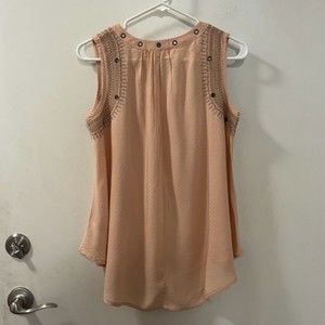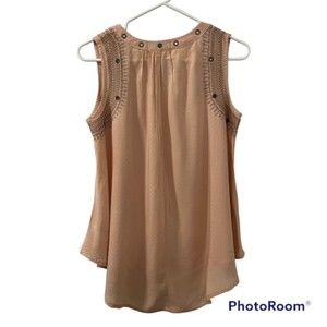 Knox Rose Womens Peach Embroidered Trim Hi Low Rayon Sleeveless Blouse Size XS