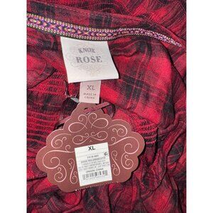 Knox Rose Womens Red Plaid Button-Down Shirt XL 100% Cotton