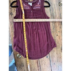 Knox Rose Womens Red Tank Top S wide straps v-neck sleeveless Rayon embroidered