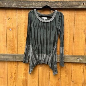Knox rose green long sleeve tie dyed top size small. Preowned great condition. Has a shark bite hem, color is so beautiful in person! Photos were taken in natural daylight. Body: 95% rayon 5% spandex, side inserts/ cuffs: 60% cotton 40% polyester. 17 in pit to pit, 31 in top to bottom. Ships in 2-3 days 🎡