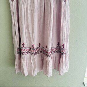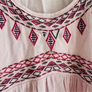 Chic pink boho dress featuring intricate embroidery. Perfect for casual outings.