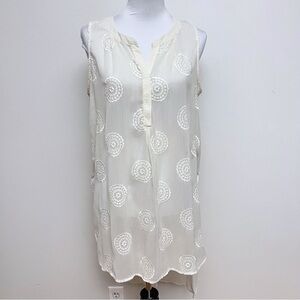 Knox Rose Women’s Size 1 Medallion Embroidered Cream Hi-Lo Sleeveless Tunic