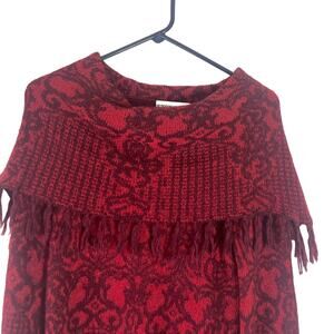 Knox Rose Women's Size Small Red Damask Boho Peasant Long Sleeve Sweater