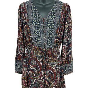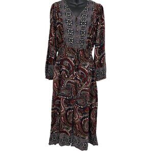 Knox Rose Womens Small S Paisley Rayon Long Sleeve Boho Long Sleeve Dress New