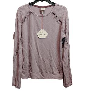 Knox Rose Women's Small Waffle Knit Pullover Henley Boho Hippie Sweatshirt