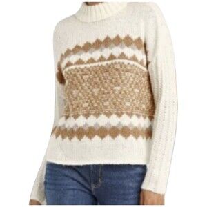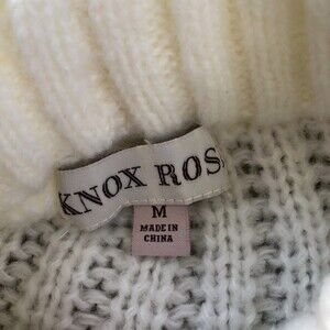 Knox Rose Women's Super Soft White and Brown Mock Turtleneck Pullover Sweater M
