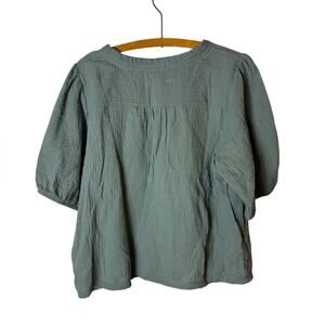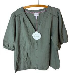 Knox Rose Women’s Sz Large Gauze Blouse Short Balloon Sleeves New NWT Olive Green