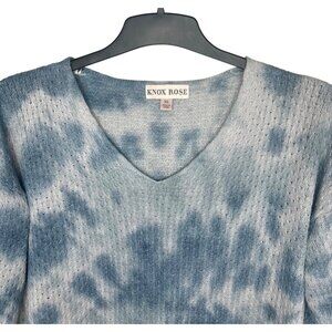 Knox Rose Womens Tie-Dye V-Neck Knit Pullover Sweater XL Blue