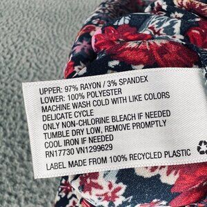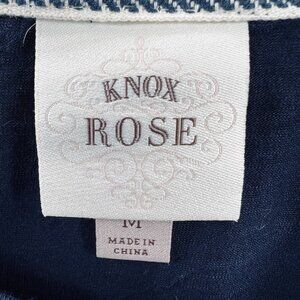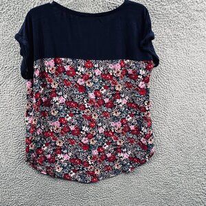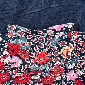 Knox Rose Womens Top Medium Blue Red Floral Short Sleeve Shirt BOHO Stretch