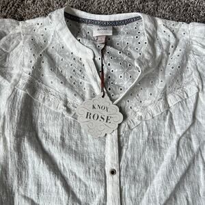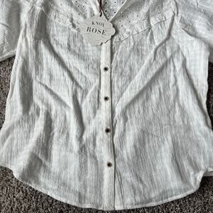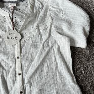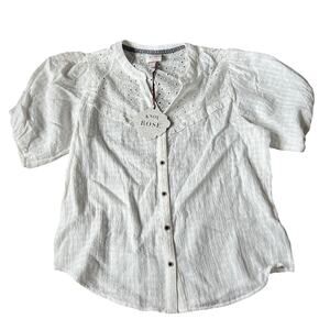 Brand new Knox Rose women's white balloon short sleeve button-front textured shirt - size small.