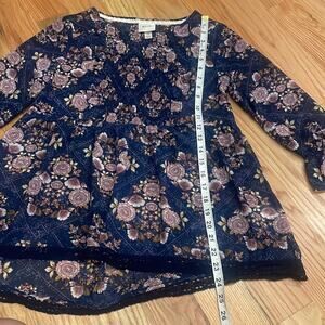 Knox Rose Women's XS Peasant Top ~ Blue & Mauve Floral Semi-Sheer Smock…