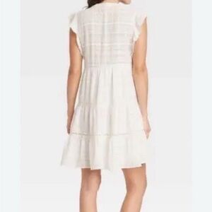 Knox Rose Womens XXL White Peasant Eyelet Tiered Boho Dress Flutter Sleeve - the dress has lining.