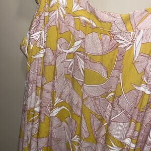 Knox Rose Womens Yellow Red Long Sun Dress L Flutter Sleeve Floral Cottage Core