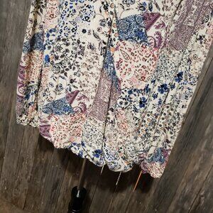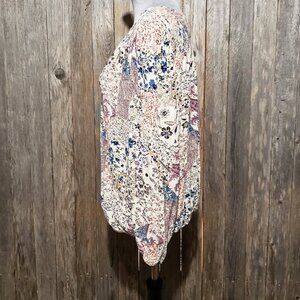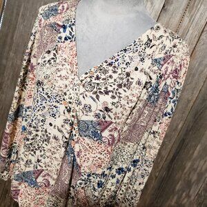 Knox Rose XL Top Blouse Cream Floral Paisley Surplice Smocked Cinched Waist Boho