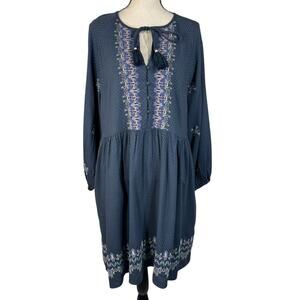 Knox Rose X-Large Shift Dress Embroidered Long Sleeve Tasseled Keyhole V-Neck