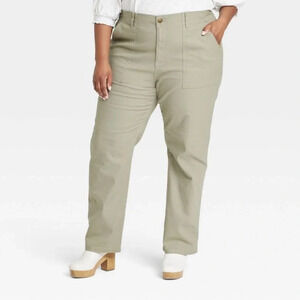 Knox rose green high rise elastic waist straight leg pants