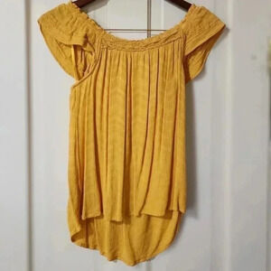 #KnoxRose #FlutterSleeves #BohoTop #YellowBlouse #RayonTop #SizeSmall #SummerStyle #BohemianVibes