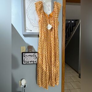 Knox Rose Yellow Patterned Flutter Tiered Maxi Dress Sizs XXL