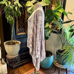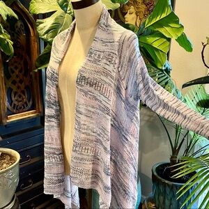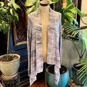 Knox Rose asymmetric waterfall open front cardigan. Pastel knit.