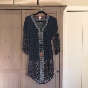 Navy blue motif with drawstring waist and beautiful embroidered detail down the front.