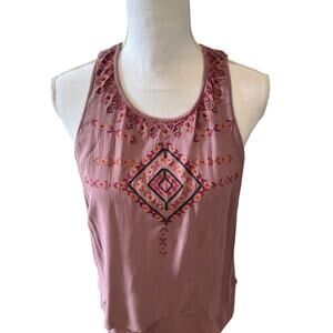 Knox Rose lavender embroidered sleeveless top L. Loose flowing tank, good preowned condition with one small pull noted - see pic. 100% rayon