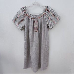 Knox Rose linen embroidered tunic dress pockets striped XLarge boho bohemian