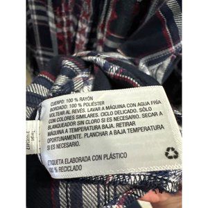 • Navy plaid design