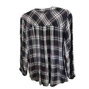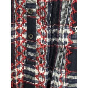 This Knox Rose top in size L features a stylish navy plaid design, beautiful embroidery, a half-button v-neck and a soft, flannel-like texture. Comfort meets style in this versatile garment. This Boho top has been steamed and comes from a smoke free home.