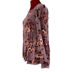 Knox Rose size XS pink floral blouse long sleeve peasant prairie top casual Boho