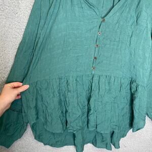 Knox Rose womens XL green long sleeve blouse top buttons flowy cottage peasant