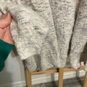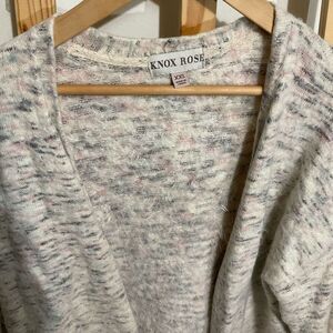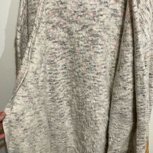 This is a heavy,very soft sweater. Open front long cardigan. This needs to be hung dry so not to ruin the hair look of the cardigan. This used in like new condition.