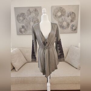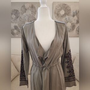 Knox Rose Embroidered Sleeve Cinched Waist Drawstring Tie Jacket