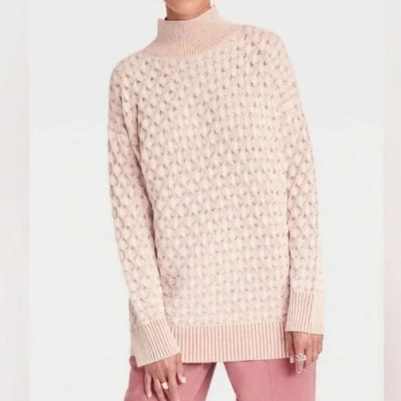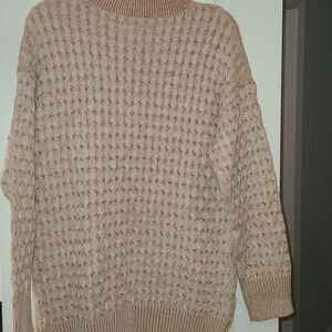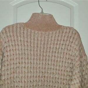 Knox Rose Mock Neck Sweater in a size small. Light pink and white in color. Made of a textured cotton/acrylic blend. Excellent condition.